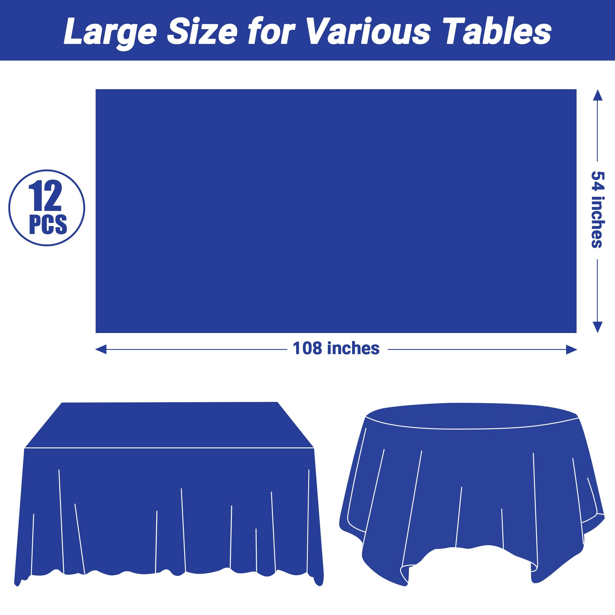 12 PCS Waterproof Plastic Table Cloth, Blue Rectangle Disposable Table Cover, Table Cloth Rectangle Table, 54 X 108 IN Wrinkle-Resistant Smooth Tablecloth for Parties Weddings Picnics Decorations ab $16.99 | TimmTomm ๐Ÿ‡บ๐Ÿ‡ธ