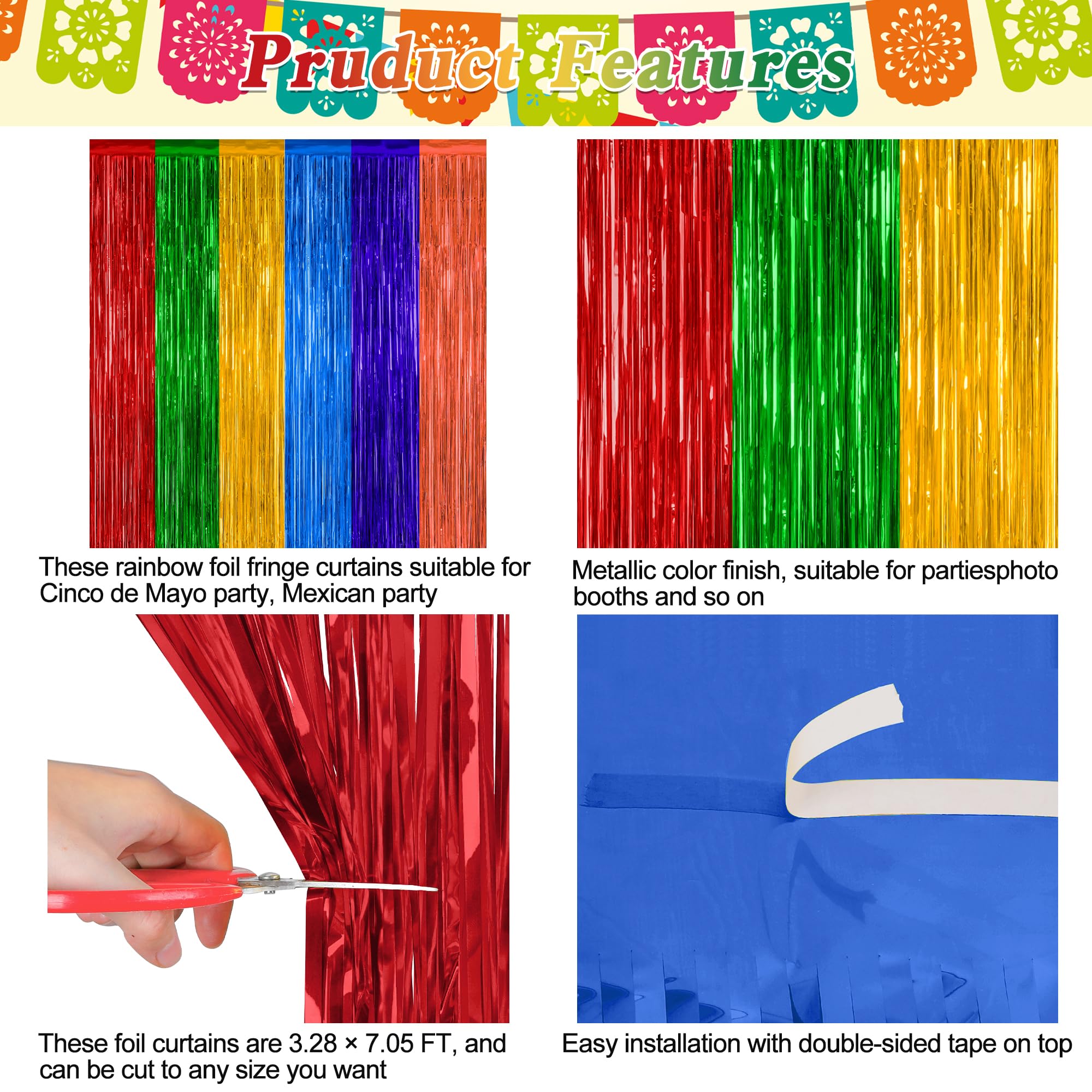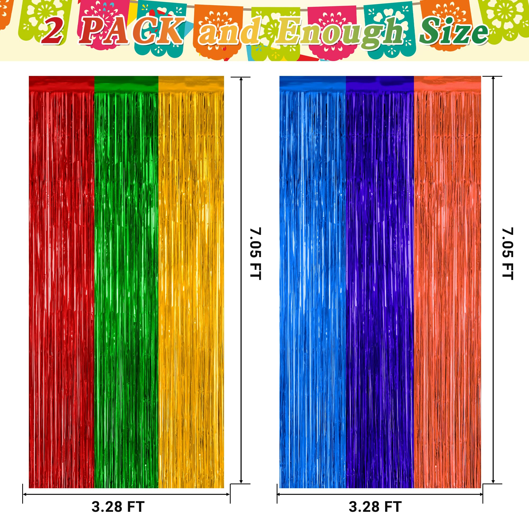2 Pack Cinco De Mayo Decorations, 3.28 FT x 7.05 FT Fiesta Rainbow Backdrop, Mexican Style Fringe Curtains Tinsel Backdrop Party Streamer, Metallic Taco Party Decorations Mexican Decor ab $6.99 | TimmTomm ๐บ๐ธ