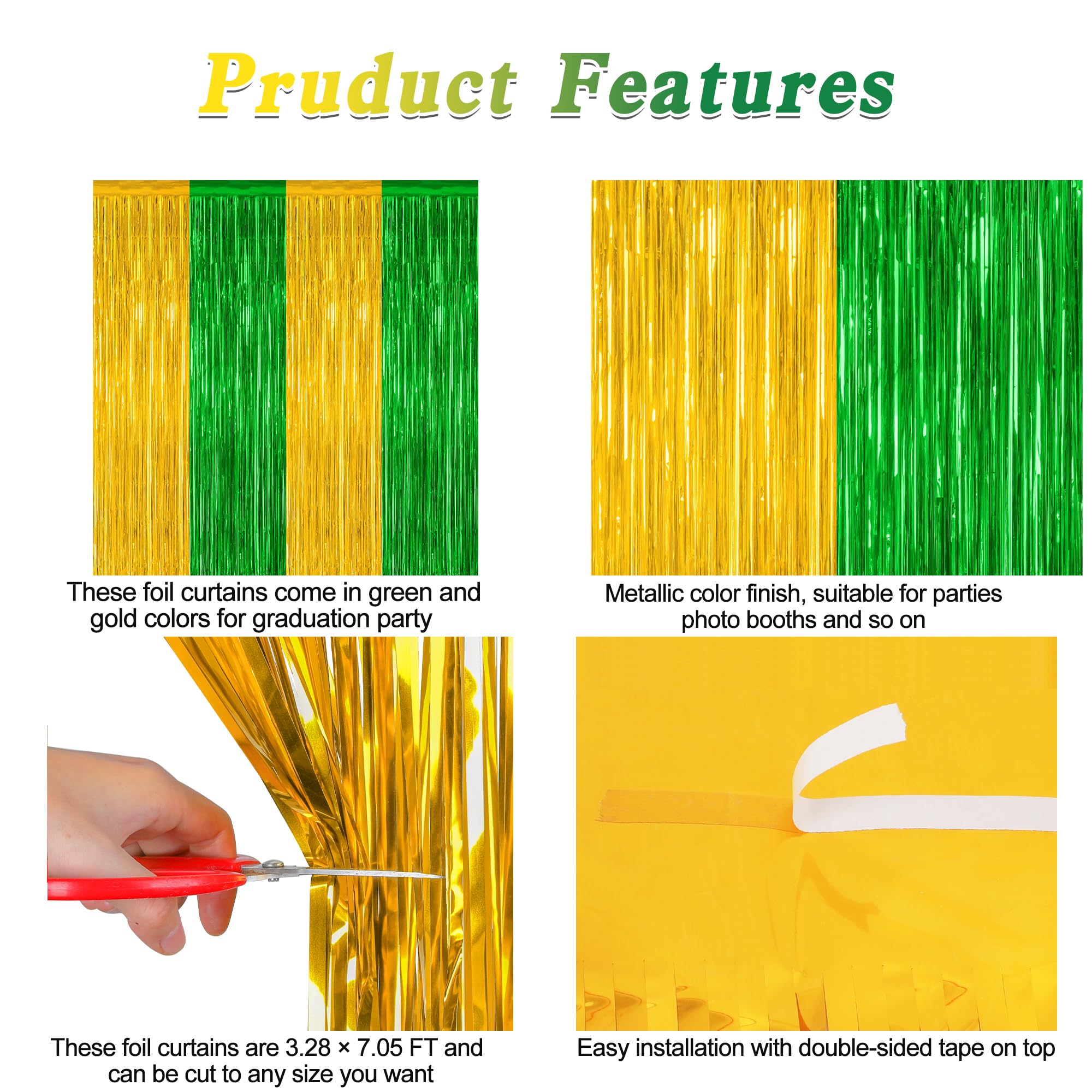 2 Pack Graduation Backdrop, Large Grad Decor 2025, Green Gold Graduation Photo Backdrop Fringe Curtains Party Streamer, Metallic Green and Gold Grad Decorations Class of 2025 ab $6.99 | TimmTomm ๐บ๐ธ