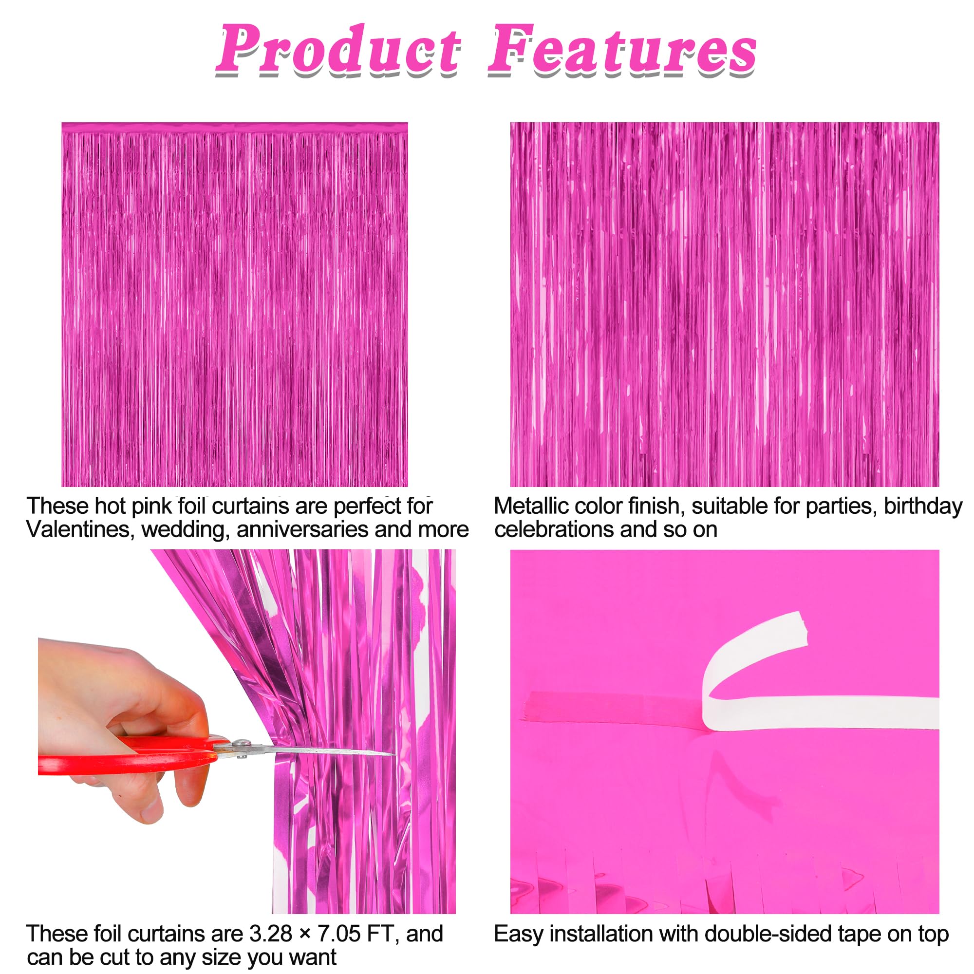 2 Pack Hot Pink Party Decorations, 3.28 FT x 7.05 FT Hot Pink Backdrop, Metallic Rose Red Photo Backdrop Foil Curtains Tinsel Backdrop, Metallic Pink Party Decor Wedding Party Supplies ab $7.99 | TimmTomm ๐บ๐ธ