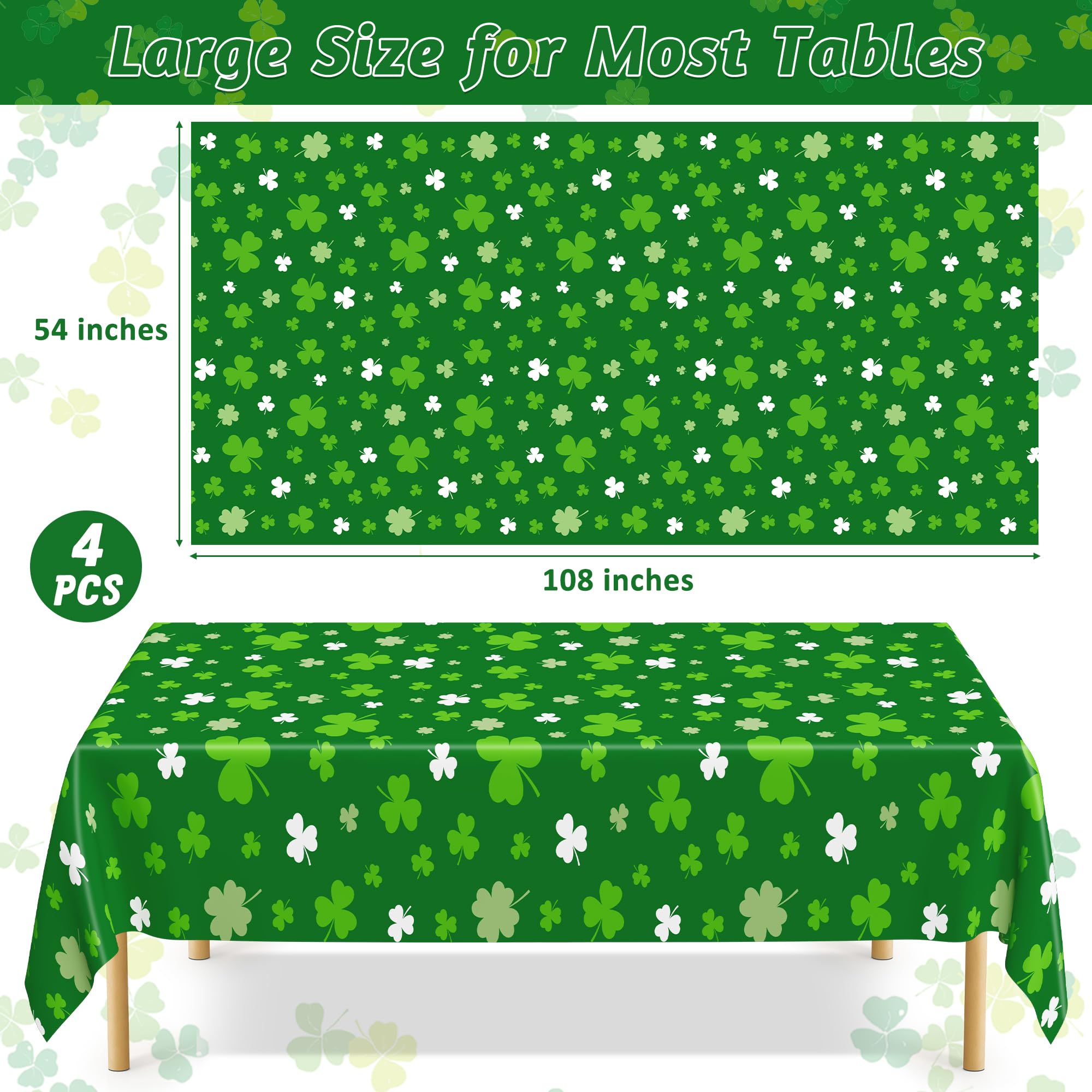 4 PCS St Patricks Day Decorations, Plastic 108 X 54 Irish St Patricks Day Tablecloth, Disposable Lucky Shamrock Decorations, Rectangle Shamrock Green Table Cloths, Lucky Decor for Memorable Table ab $12.99 | TimmTomm ๐บ๐ธ