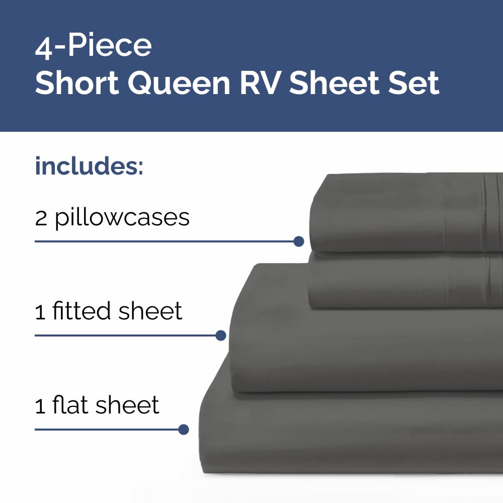 RV Short Queen Sheet Set 60 X 75 - 4 Piece RV Short Queen Bed Sheets - Soft, Breathable and Cooling - Designed for Bunks, Trailers & Campers - Fits 8โ to 12 Mattress - Hotel Luxury Bedding - Charcoal