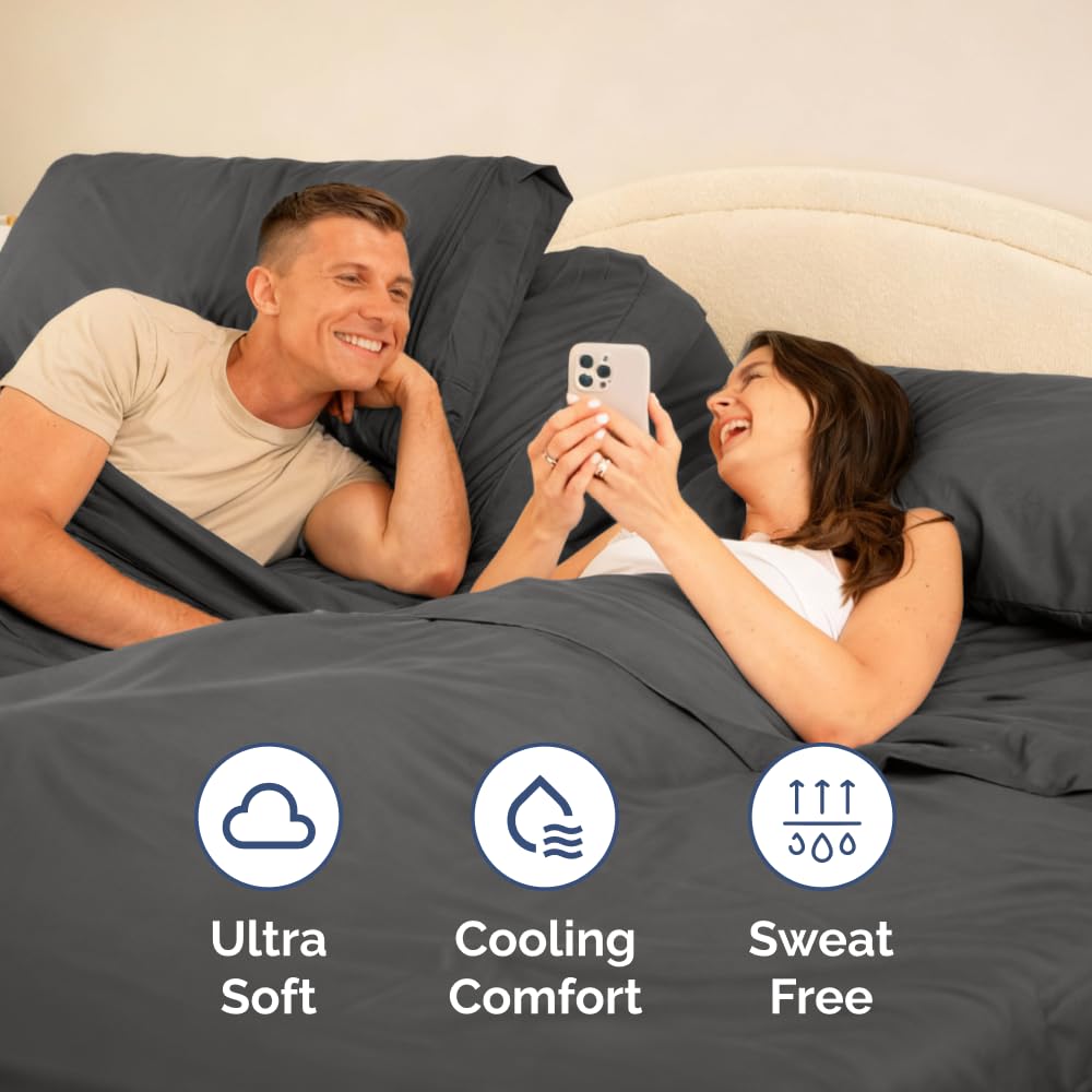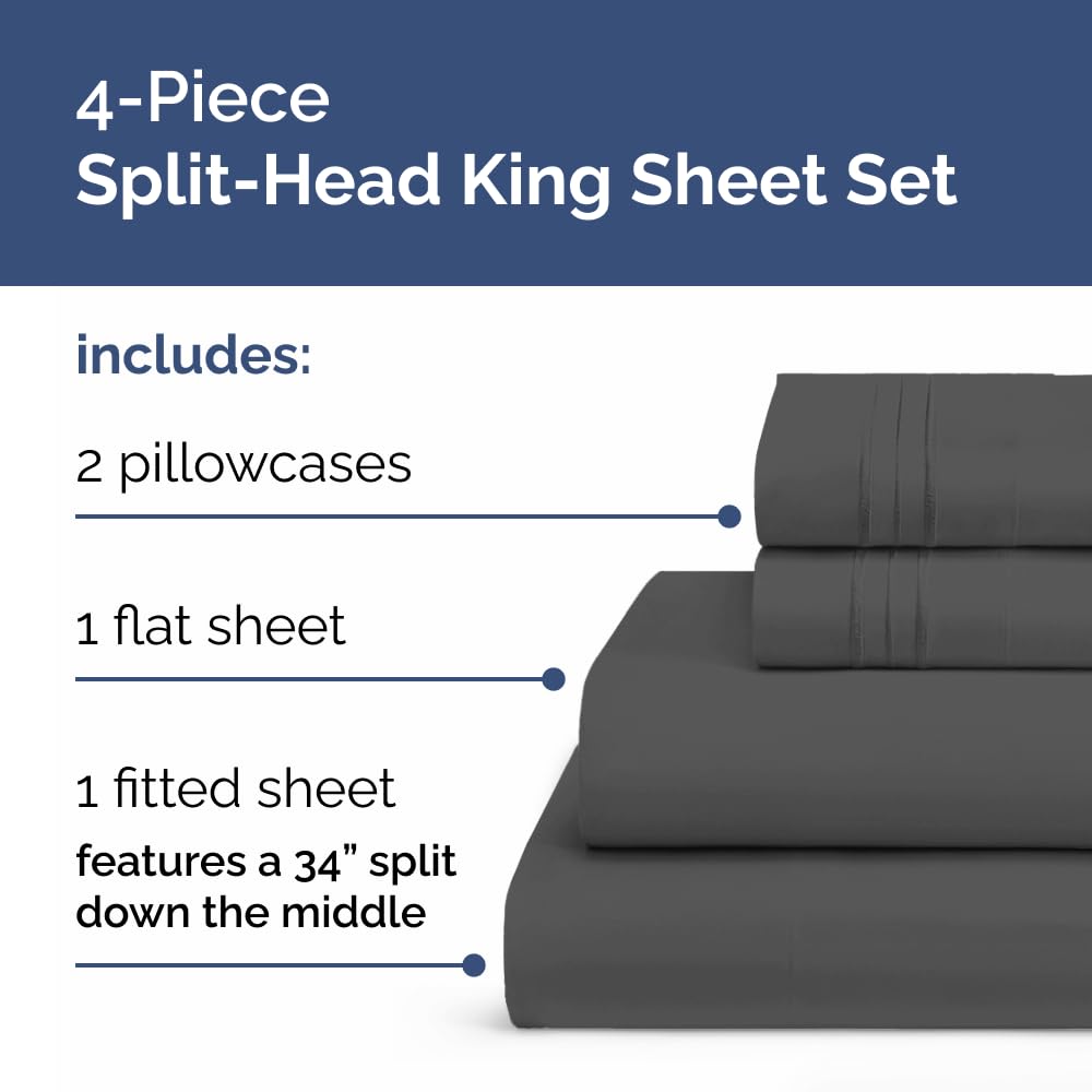 Split Head King Sheet Set โ 4 Piece Flex Split Top King Sheets for Adjustable Beds - Fits 14โ to 16 Mattress w/ Deep Pockets - Soft, Breathable & Cooling - Luxury Bedding and Wrinkle Free - Charcoal