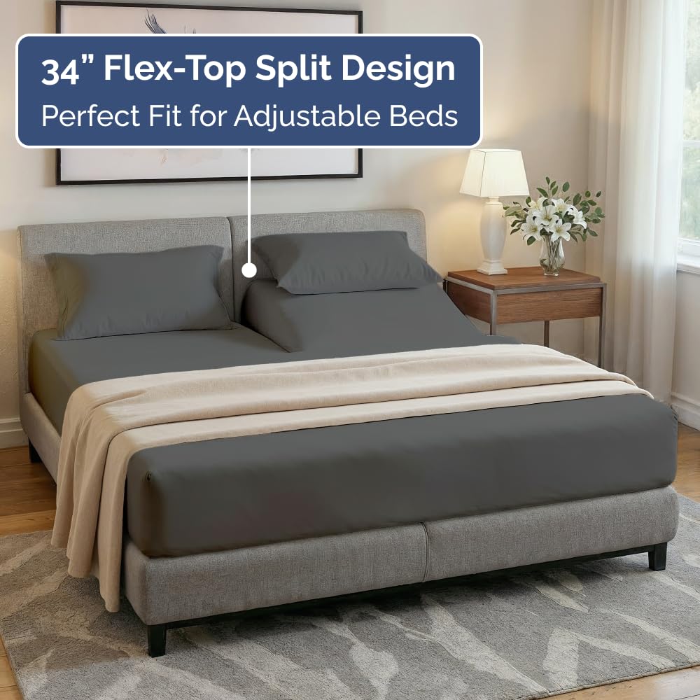 Split Head King Sheet Set โ 4 Piece Flex Split Top King Sheets for Adjustable Beds - Fits 14โ to 16 Mattress w/ Deep Pockets - Soft, Breathable & Cooling - Luxury Bedding and Wrinkle Free - Charcoal ab $39.99 | TimmTomm ๐บ๐ธ