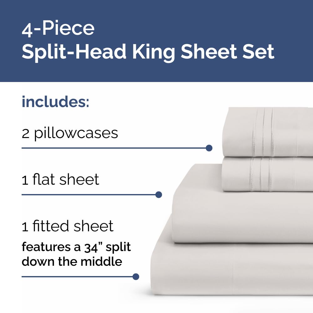 Split Head King Sheet Set โ 4 Piece Flex Split Top King Sheets for Adjustable Beds - Fits 14โ to 16 Mattress w/ Deep Pockets - Soft, Breathable & Cooling - Luxury Bedding & Wrinkle Free - French Grey ab $39.99 | TimmTomm ๐บ๐ธ