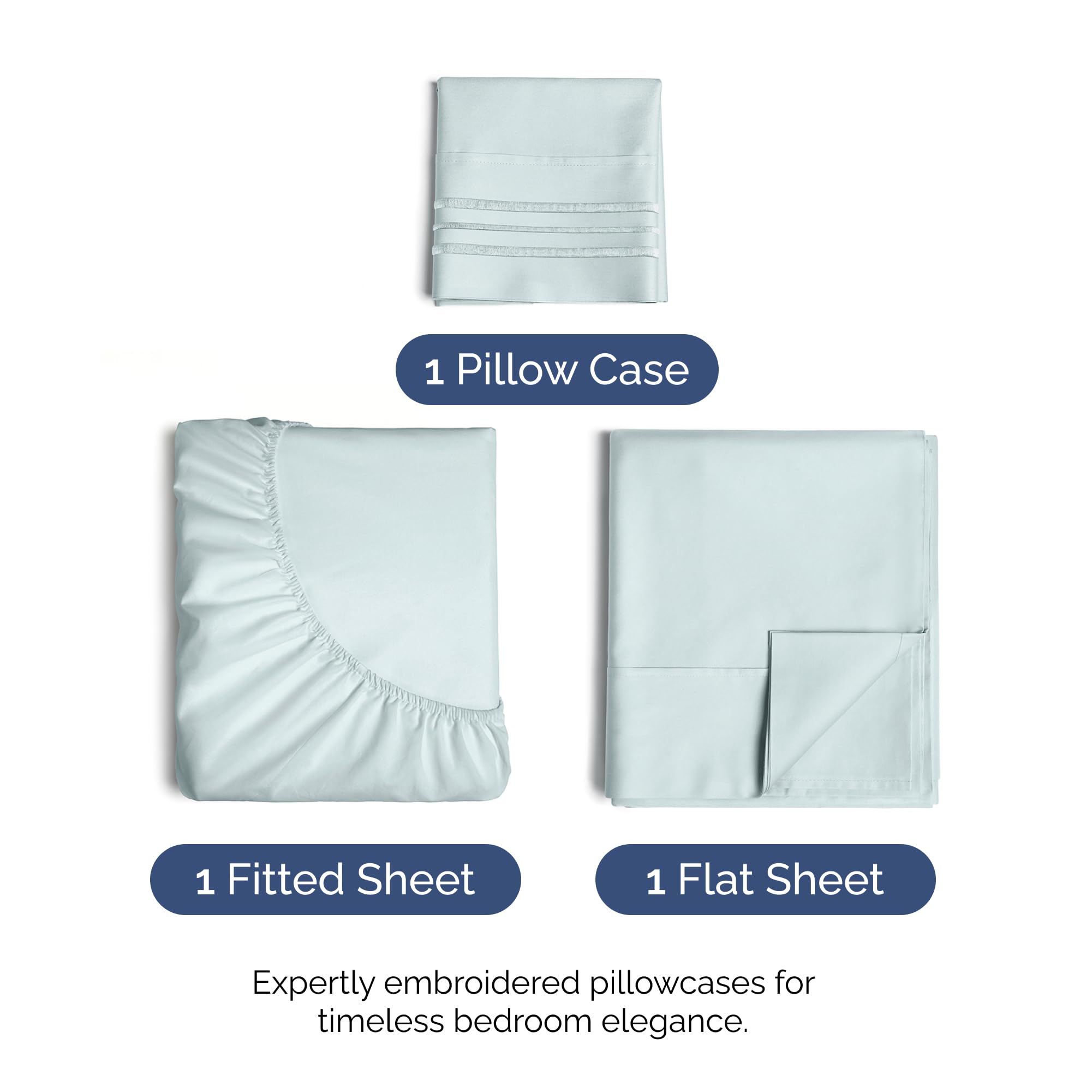 Twin Size 3 Piece Sheet Set - Comfy Breathable & Cooling Bed Sheets Set - Hotel Luxury Bedding for Women, Men, Kids, Teens, Boys & Girls - Deep Pockets, Ultra-Soft, Wrinkle Free - Oeko-Tex - Ice Blue