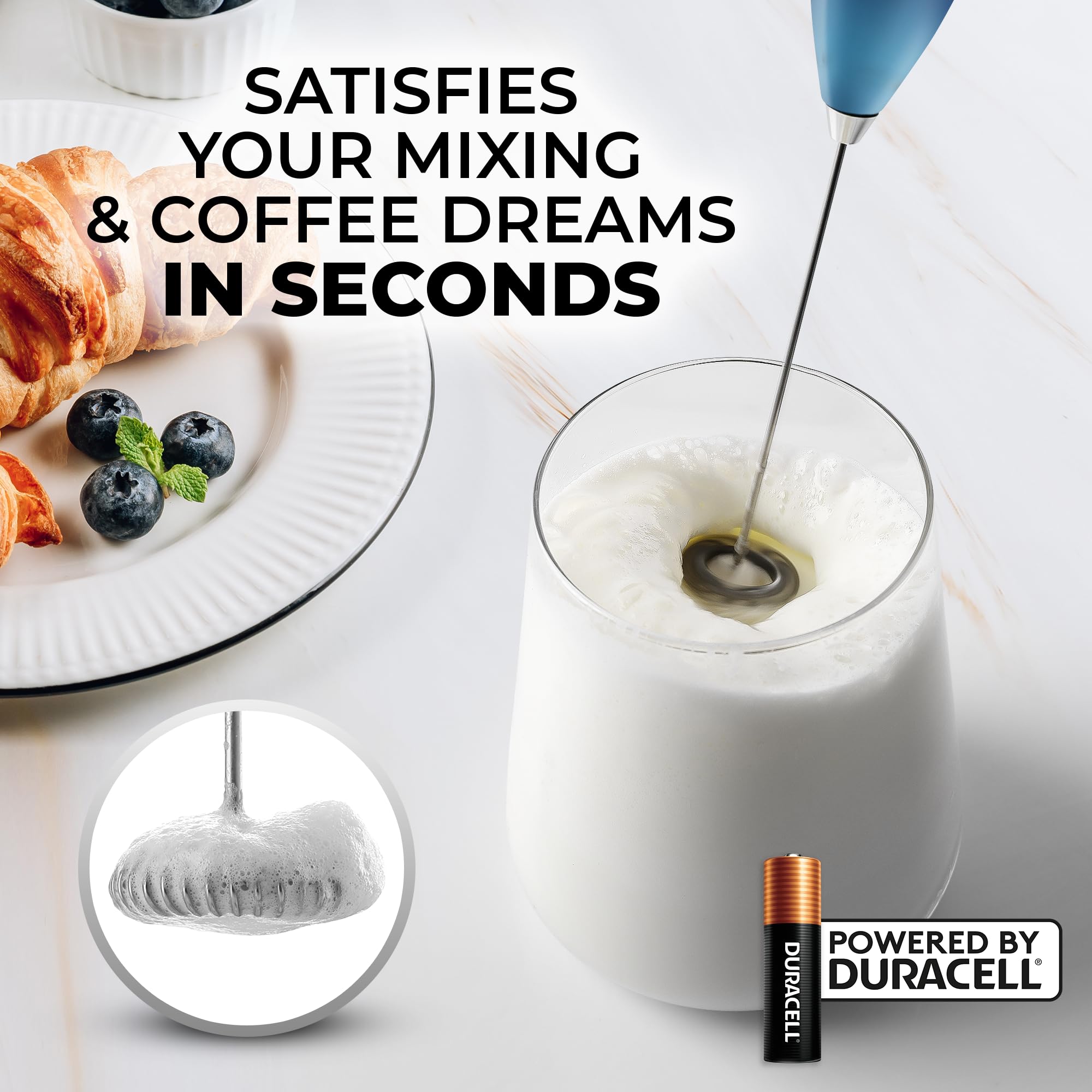 Zulay Kitchen Milk Frother Handheld Electric Whisk with AA Duracell Batteries โ Durable Drink Mixer for Coffee, Lattes, Cappuccinos & More - Deep Sea ab $13.99 | TimmTomm ๐บ๐ธ